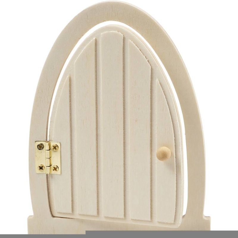 Detaljeret miniaturedør af krydsfiner med kuglegreb, som du kan åbne. Brug døren i dine kreative miniature-projekter