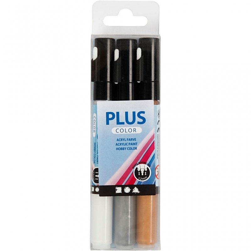 Plus Color tusch, L: 14,5 cm, streg 1-2 mm, guld, sølv, råhvid, 3 stk./ 1 pk., 5,5 ml