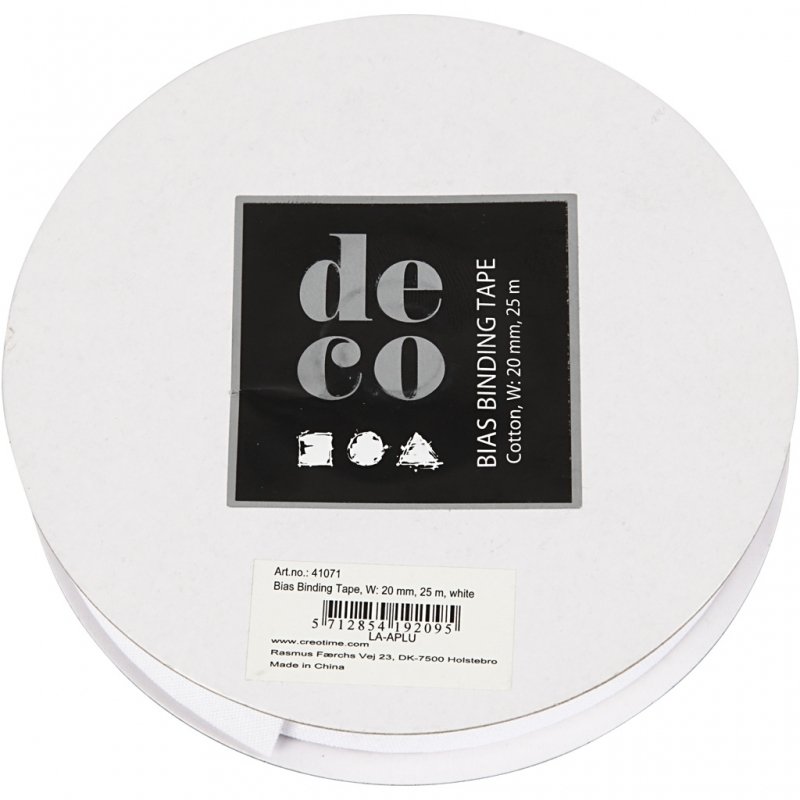 Skråbånd, B: 20 mm, Hvid, 25 M, 1 Rl.