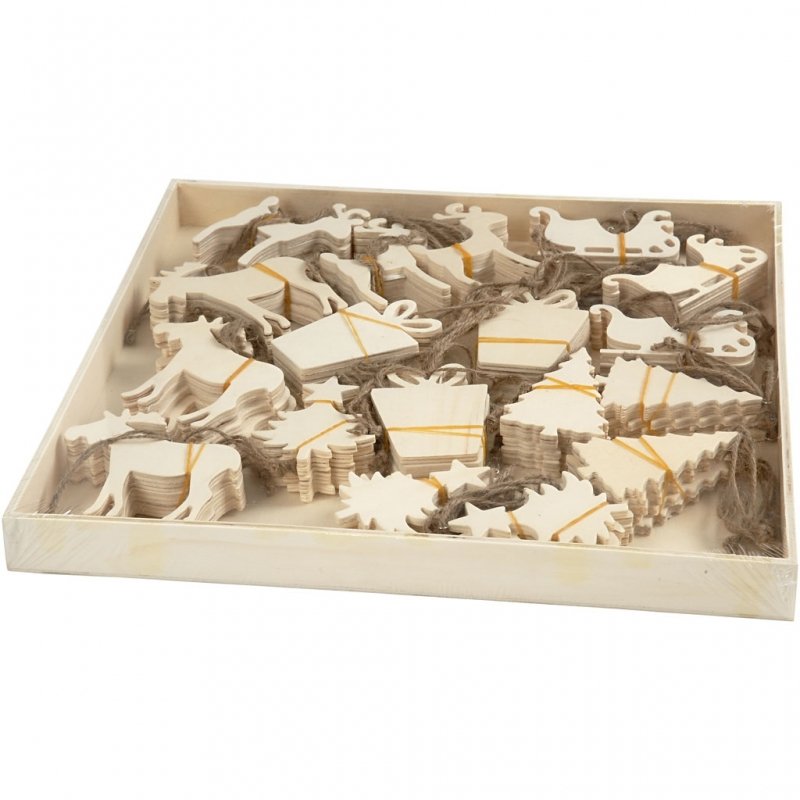 Ophæng i lyst træ i 6 forskellige design Leveres i displayboks str. 37x37 cm