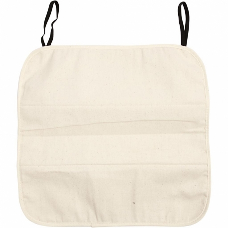 Foldbart siddeunderlag af isolerende folie med yderstof af bomuld. Ydersiden kan dekoreres med fx tekstiltusch eller tekstilmaling