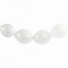 Ensfarvede, runde balloner af naturgummi. Hver med snip i modsatte ende af mundstykket til at forbinde i kæde med andre, oppustede balloner