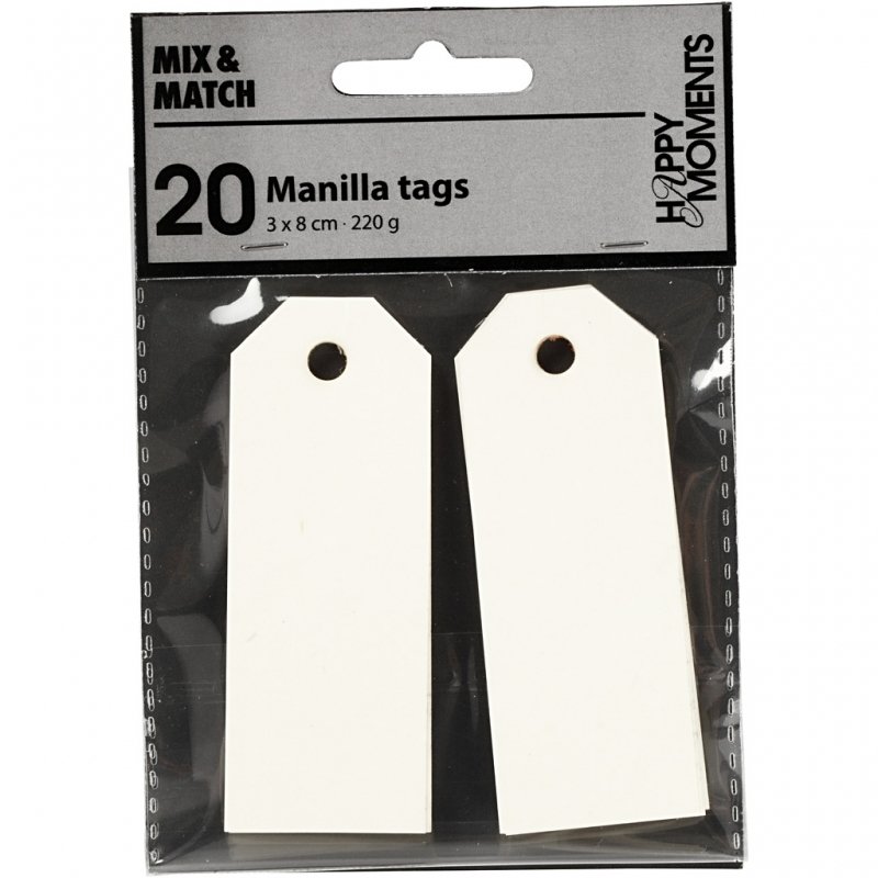 Manilamærker, 3x8 cm, 220 g, Råhvid, 20 Stk., 1 Pk.