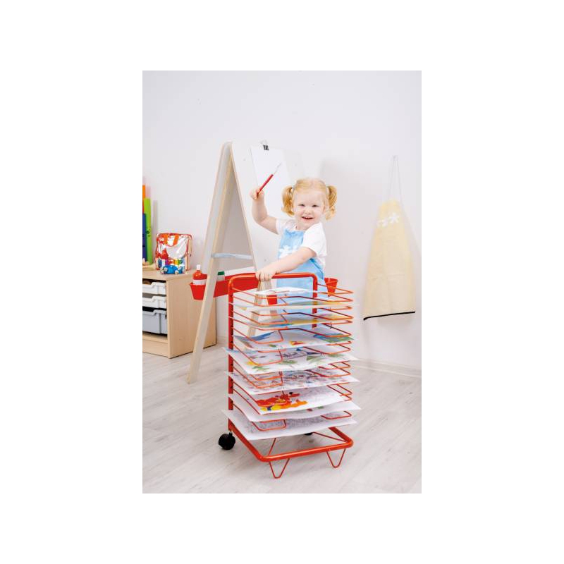 Flytbar tørrestativ til kreative værker. Et praktisk og robust tørrestativ med 25 hylder til malerier, tegninger og andre kreative projekter. Str. 43 x 33 x 90 cm