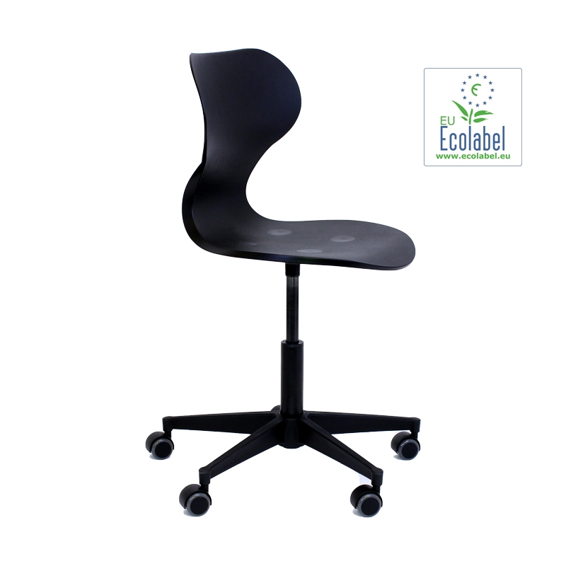 Den sorte skal er fremstillet af 100% genbrugsplast, og sædebrikker består af FSC-mærket træ for mindre miljøbelastning. Alle materialer er nøje udvalgt med henblik på 100% recirkulering. Fås til indskoling, mellemtrin/udskoling.