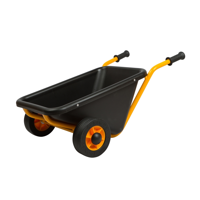 Trillebør med gummihjul og gummihåndtag på stellet af pulverlakeret stål kan bruges til både haveaffald, sand fra sandkassen eller til at fragte sin bedste ven.