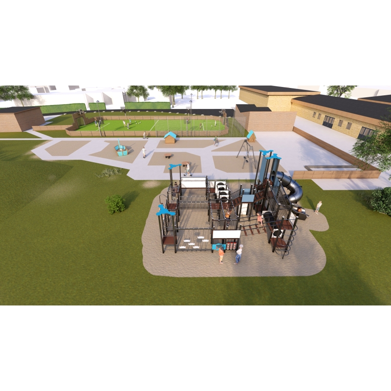 Det Dynamiske Motoriktårn Ino er et stort aktivitets- og klatrestativ, designet til at udfordre og engagere børn i alderen 6–12 år+. Løsningen kombinerer og forbinder tårnene med forskelligartet udfordringer og legefunktioner, hvilket skaber en helhedsoplevelse af klatring, balance, armgang og social leg.