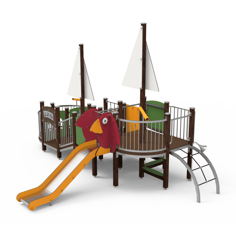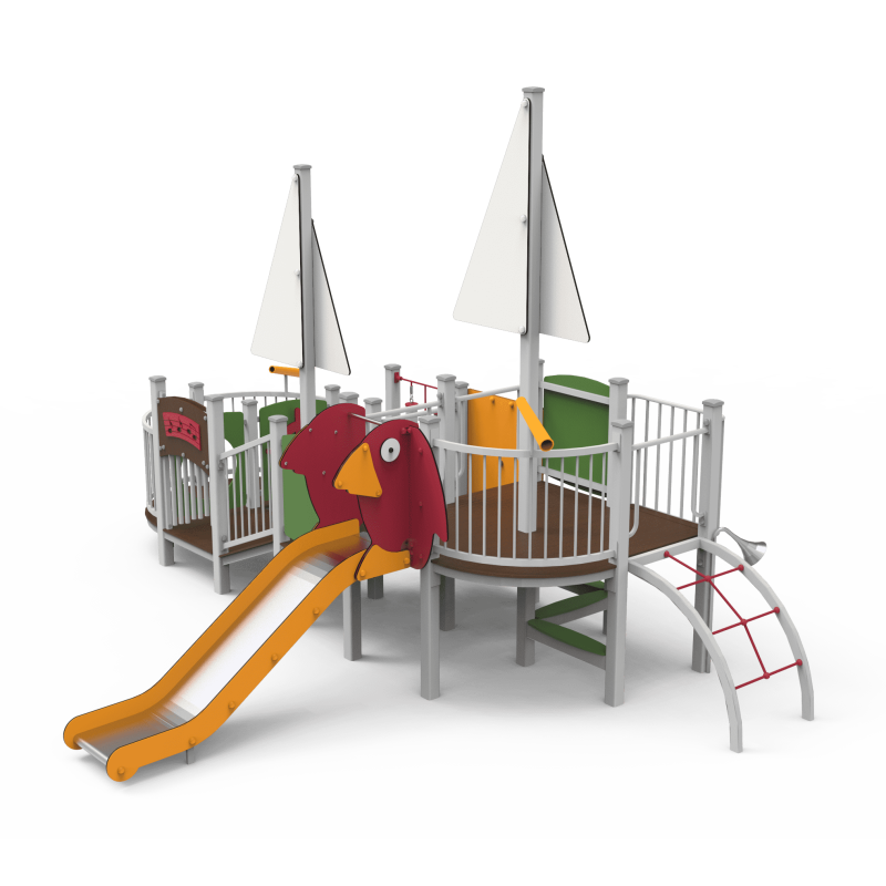 inviterer børn til fantasifuld leg som kaptajn og skipbrud – gennem samarbejde, rolleleg og sansemotoriske udfordringer udvikler børn kreativitet, balance og fællesskab.