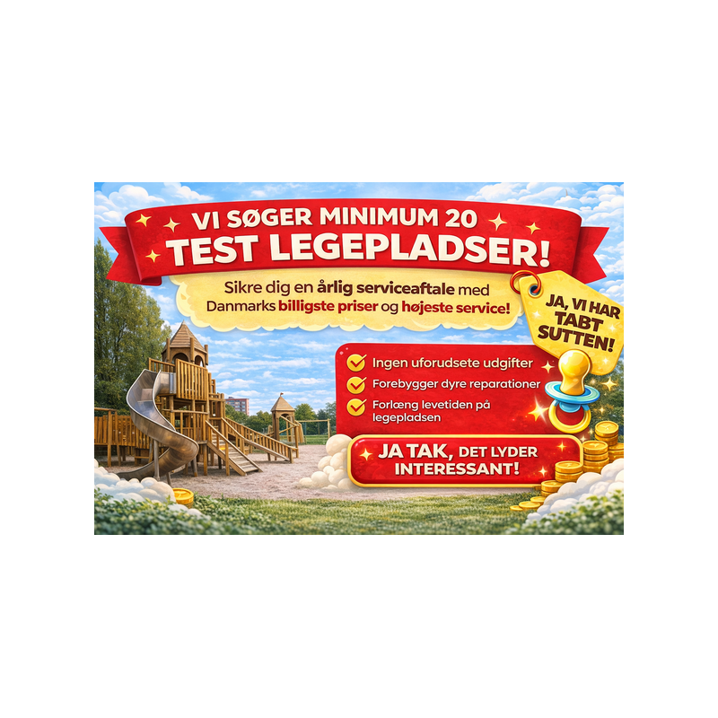 Med vores serviceaftale får I faste, årlige servicebesøg, hvor vi gennemgår, efterspænder og vedligeholder jeres redskaber. Det forebygger dyre reparationer, forlænger levetiden og sikrer, at legepladsen altid er tryg at bruge.