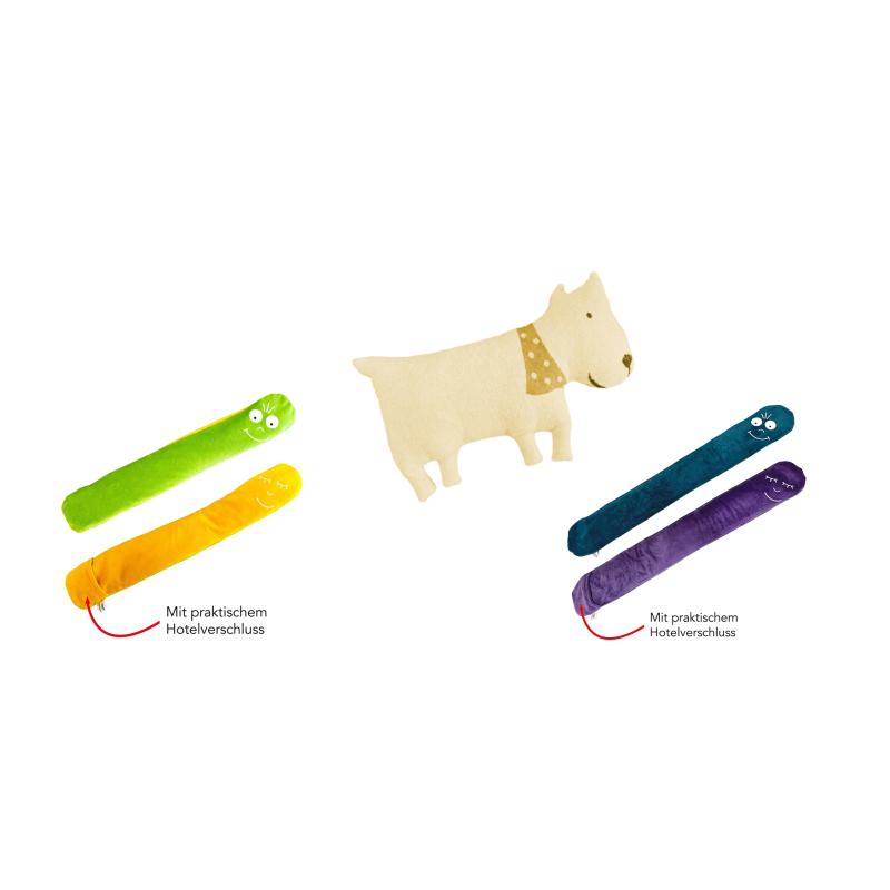 Pakken indeholder to vendbare “hyggeorme” samt én tryghedsven-hund i tunge, sansestimulerende materialer.