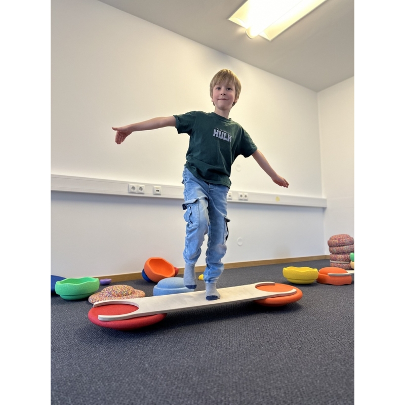 Dette unikke sæt af balancebroer inviterer børnene ind i en verden af leg og motorisk udfordring. Med forskellige former og bredder er broerne designet til at stimulere barnets balanceevne, kropsbevidsthed og koordination på en sjov og fantasifuld måde.