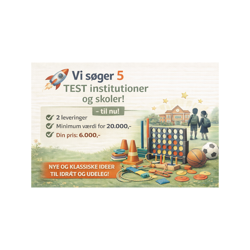 Vi sammensætter pakker med fokus på bevægelse, fællesskab og leg – klar til brug i hverdagen og sparer minimum 14.000 kr. på liste priser!