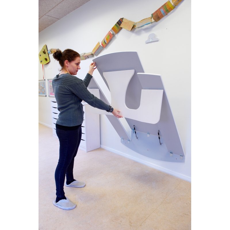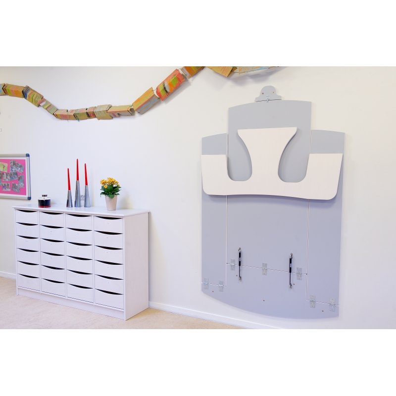 Referencenr: 50000Væghængt Bord-/ bænkesæt Væghængt Bord-/ bænkesæt lille model 120 cm. Klapbord i 18 mm. hvidpigmenteret birkekrydsfinder med lysegrå slidstærk laminat på bord og bænke. Leveres incl. gasdæmpere som gør det let at hæve og sænke bordet.