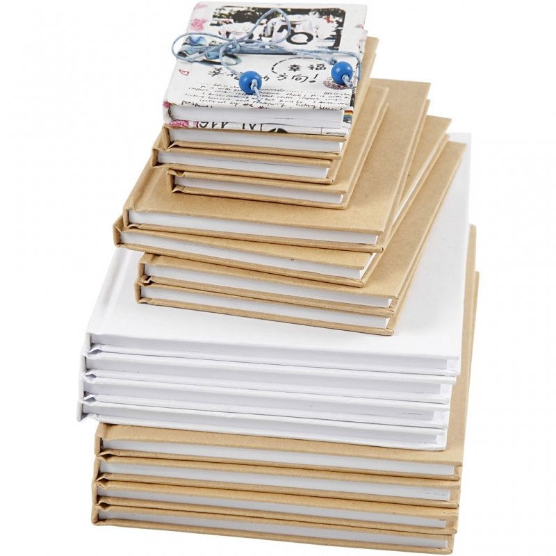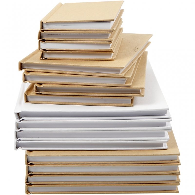 Indhold: 12 stk. A5 hvide, 12 stk. natur, 24 stk. A6 og 24 stk. A7