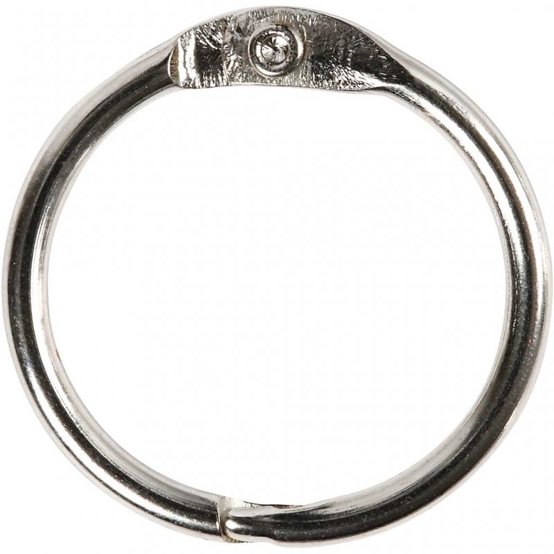 Metalring med åbning på midten. Til samling af mapper, bøger o.lign.