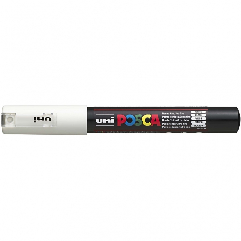 Posca Tusch, Pc-1m, Extra-fine, Stregtykkelse: 0,7 , Hvid, 1 Stk.