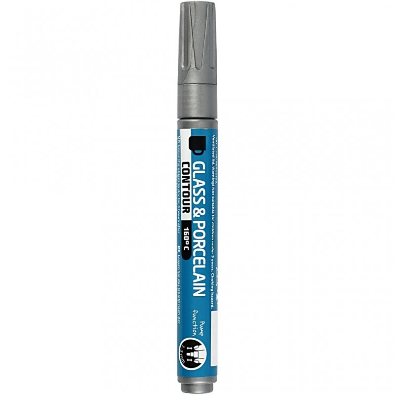 Glas- Og Porcelænskontur, Stregtykkelse: 1-2 , Dækkende, Sølv, 1 Stk.