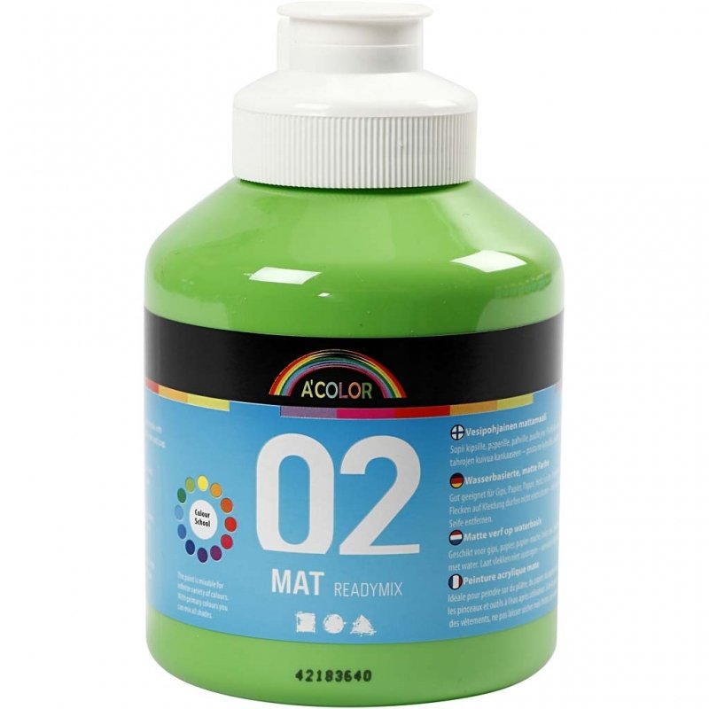 A-color Akrylmaling, 02, Mat, Lys Grøn, 500 ml, 1 Fl.