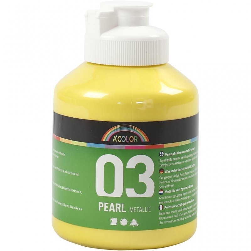A-color Akrylmaling, 03, Metallic, Gul, 500 ml, 1 Fl.