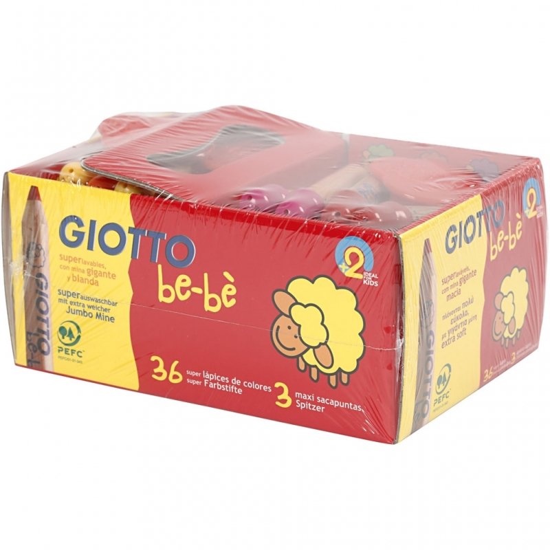 Korte, tykke jumbo farveblyanter i ekstra god kvalitet med fuldlimet mine fra Giotto be-bè inkl. Blyantspidser. Godkendt og udviklet til børn fra 2 år+