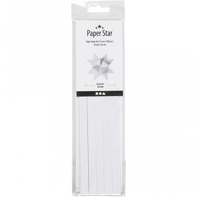 Stjernestrimler, B: 10 mm, 4,5 cm, Hvid, 100 Strimler, 1 Pk.