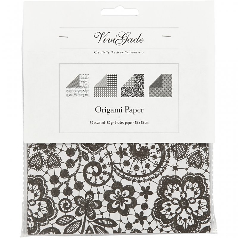 Origamipapir, 15x15 cm, 80 g, 50 Ass. Ark