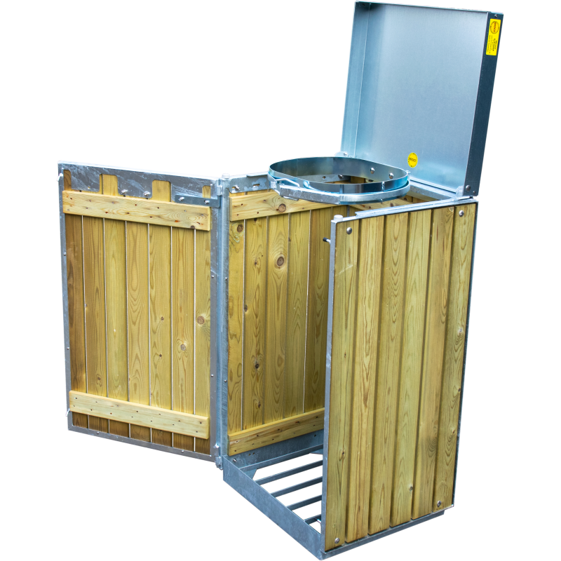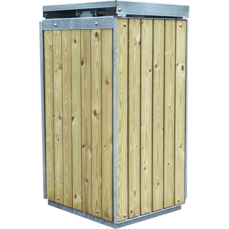 Park skraldespand er fremstillet med stålrammen påsat trykimprægneret planker