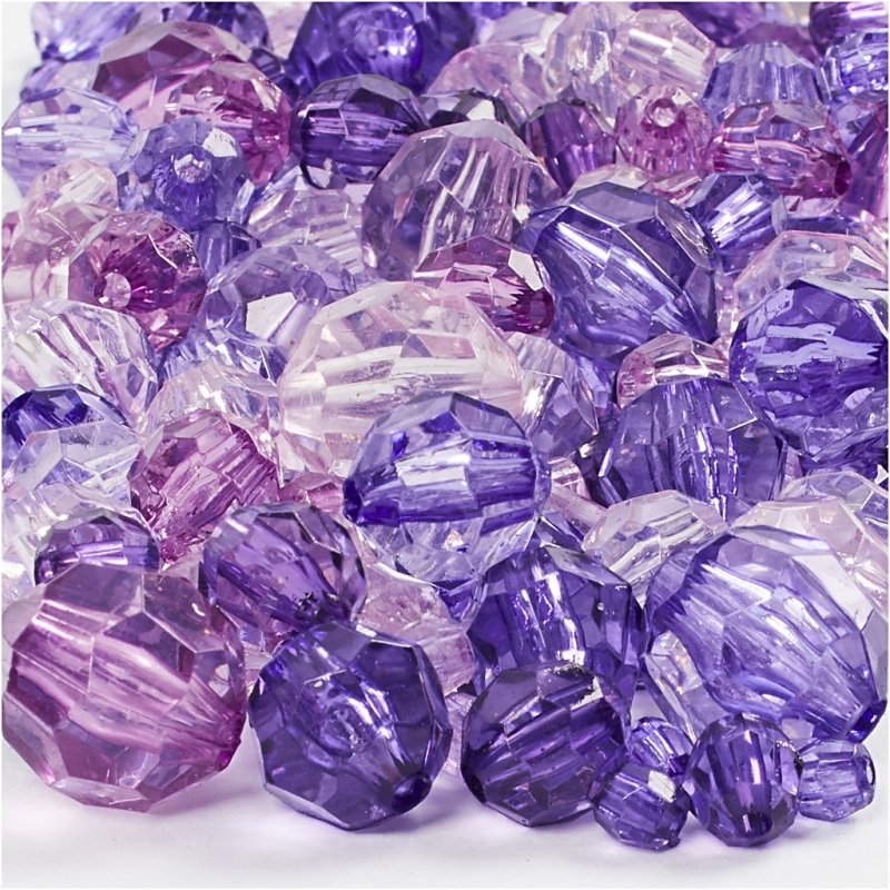 Harmoni Facetperlemix, 4-12 mm, 1-2,5 mm, Lilla, 250 G, 1 Pk.
