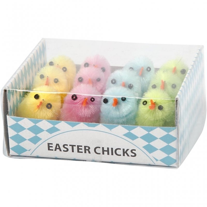 Påskekyllinger, 30 mm, Pastelfarver, 12 Stk.