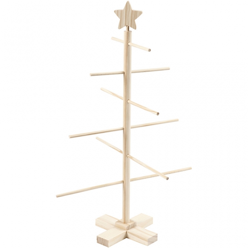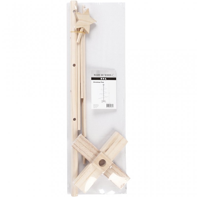 Højt saml-selv-juletræ i stabil kvalitet af løse dele i fyrretræ, der samles nemt uden brug af værktøj
